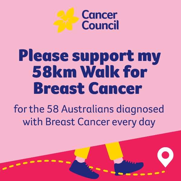 This October I'll be walking 58km for the 58km Aussies diagnosed with breast cancer every day.