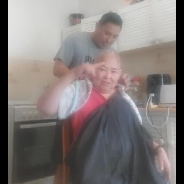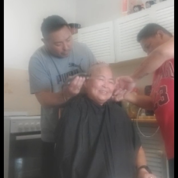 Later that day after a visit to my brother’s place. My brothers face timed me and shaved mums head. Two of my brothers and stepdad shaved their heads in solidarity.